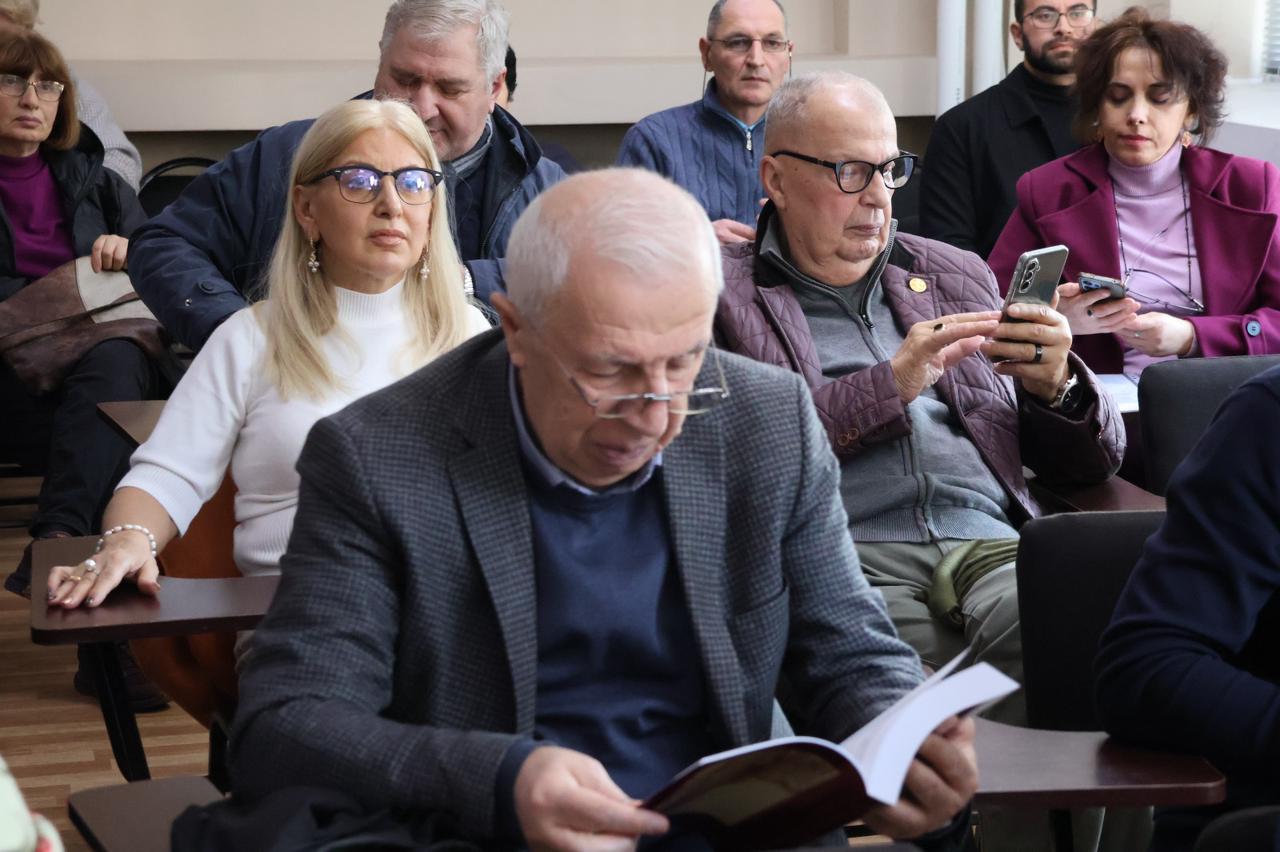 თავმჯდომარის მოადგილე ზურაბ ჯგუბურია, სამეცნიერო საზოგადოების წარმომადგენლები, ისტორიკოსები, სოხუმის სახელმწიფო უნივერსიტეტის პროფესორ-მასწავლებლები
