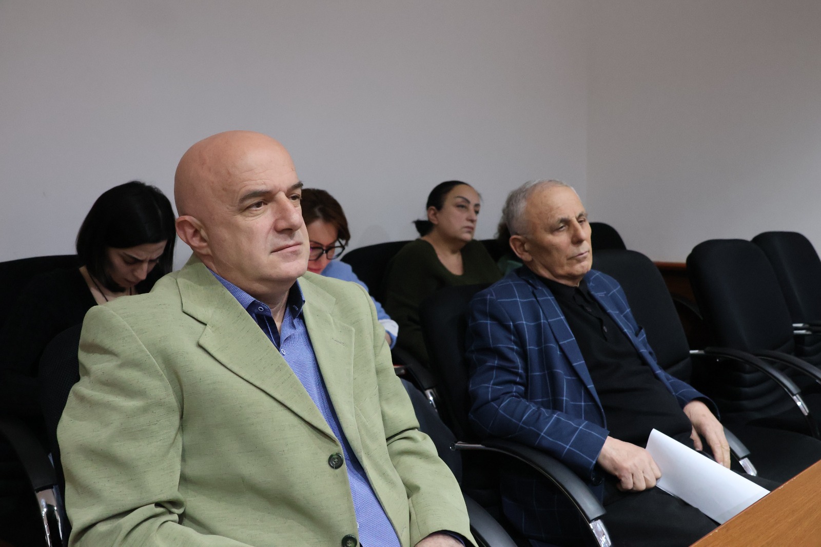 აპარატის უფროსი მურმან ფარფალია, ამავე კომიტეტის აპარატის სპეციალისტები იზოლდა ხვიჩია